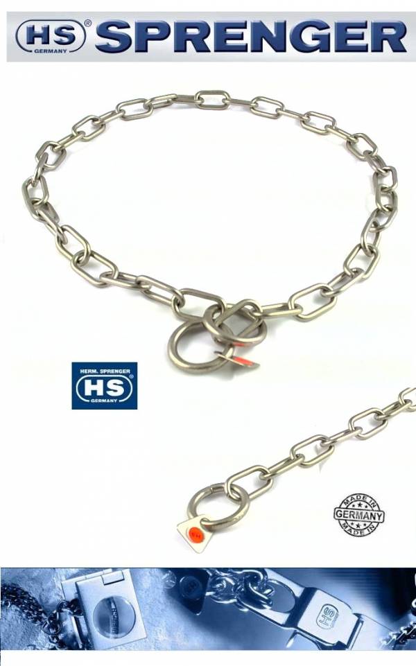 Per scegliere la misure giusta del collare sprenger a catena misurate la circonferenza del collo del vostro cane nella zona più larga (sopra le orecchie e sotto il muso) Il collare deve essere abbastanza grande per scivolare sopra la testa e le orecchie del vostro cane .